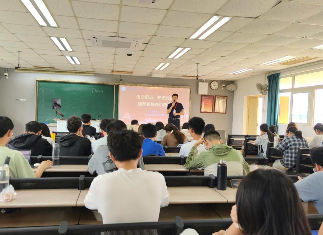 为深入学习宣讲习近平新时代中国特色社会主义思想,引导大学生树立正确的世界观、人生观和价值观,扣好“人生第一粒扣子”。3月27日上午,中药学院院长白云龙以“使命担当,守正创新,国际视野新中药人”为题,在大学城校区教学楼A506教室为2024级临床药学班同学讲授2025年春季学期“思政第一课”。